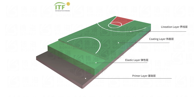 由PU彈性層BH-CS01、加強(qiáng)層和水性面漆耐磨層BH-WB01刮涂組成,該結(jié)構(gòu)具有優(yōu)越物理性能,滿足人體工學(xué)的彈力科技,色彩美觀,施工方便、耐候性能強(qiáng),防滑性好、容易保養(yǎng)的有點(diǎn)。